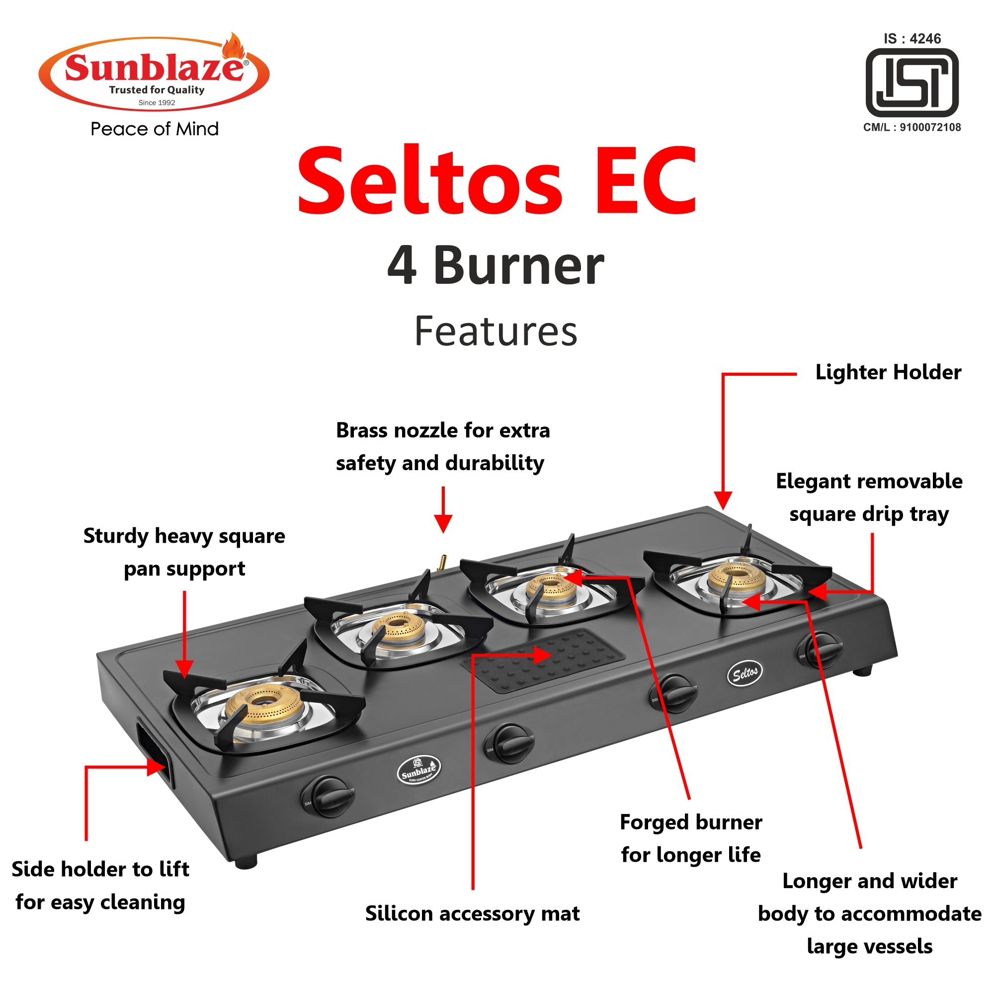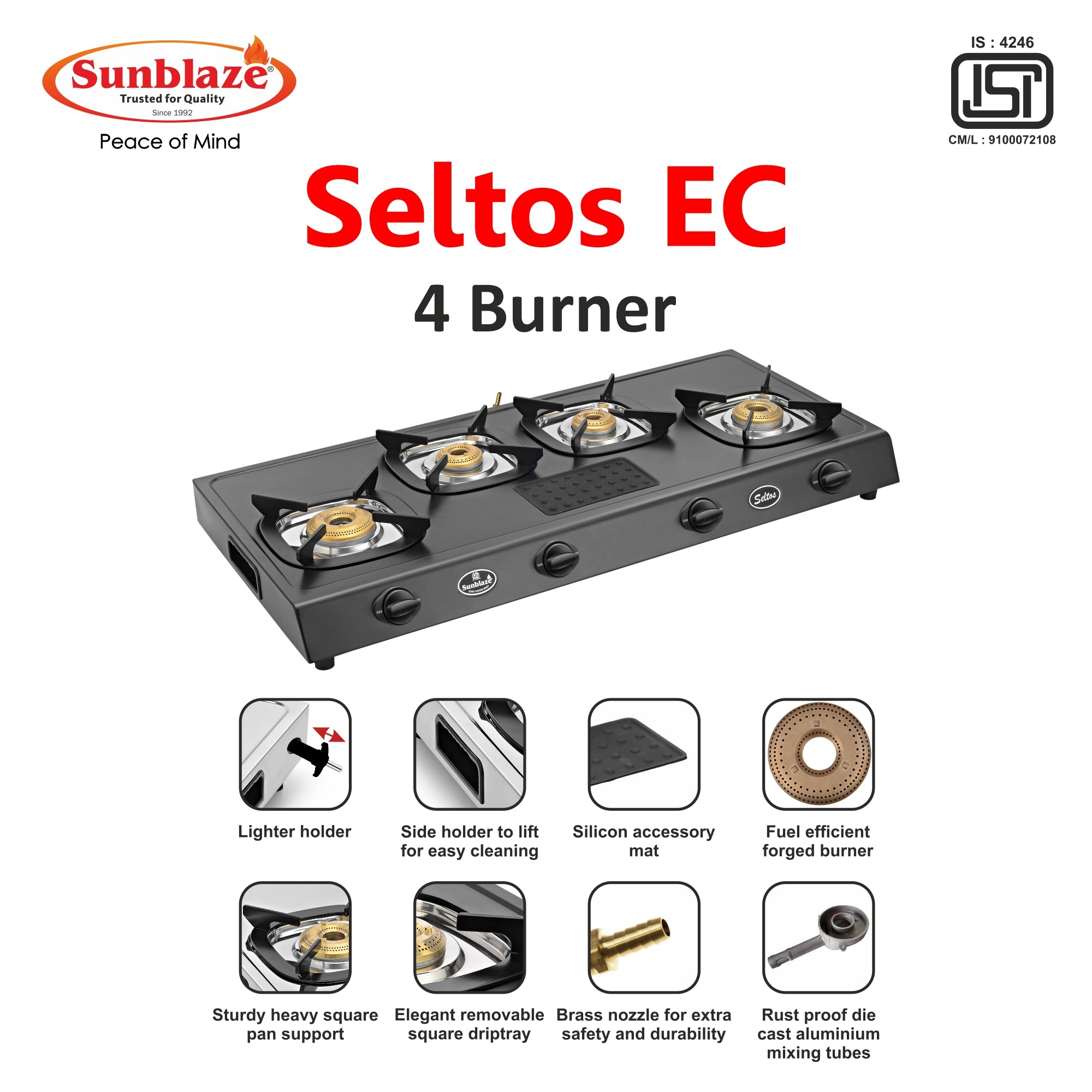 • Fuel efficient brass burners.