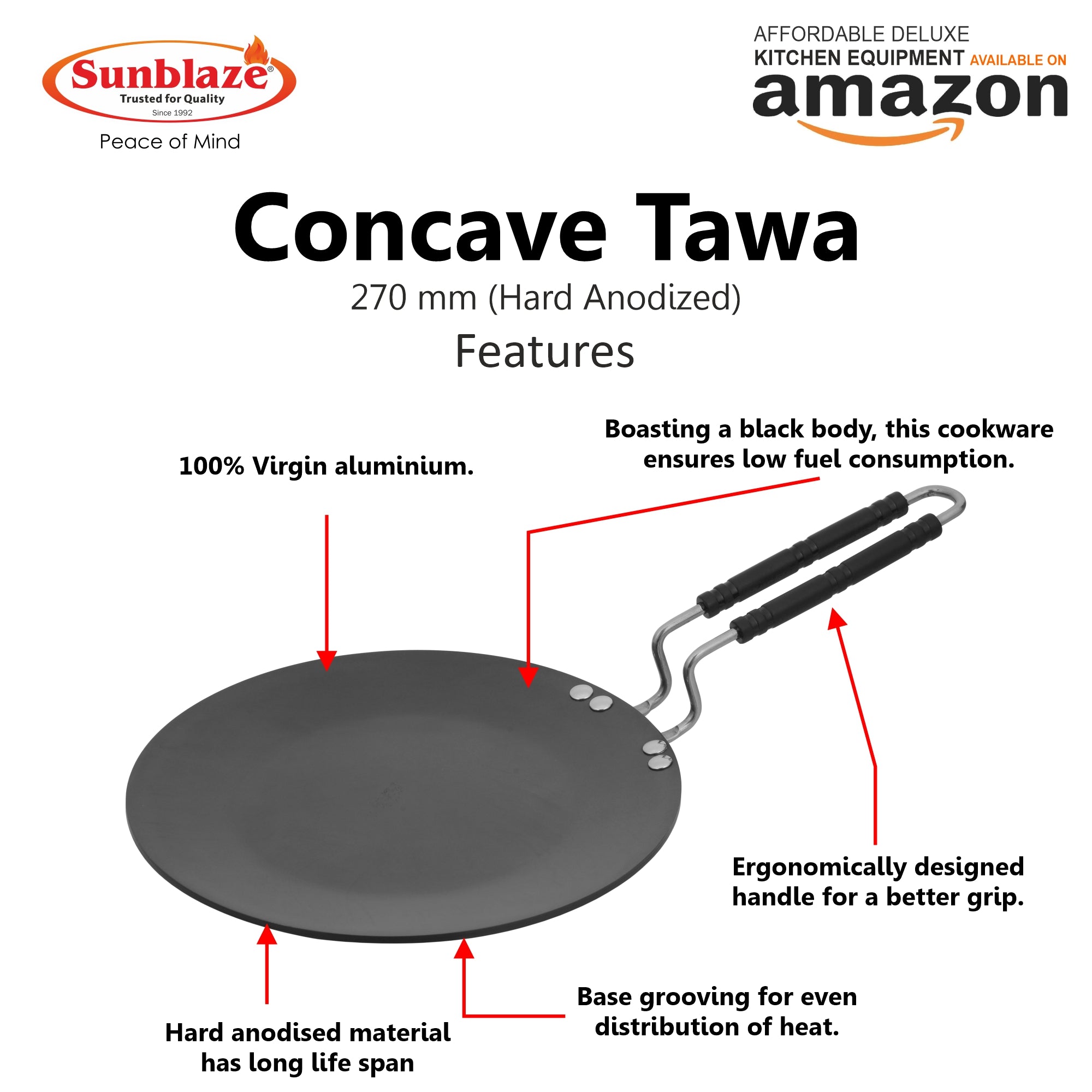 • Boasting a black body, this cookware ensures low fuel consumption.